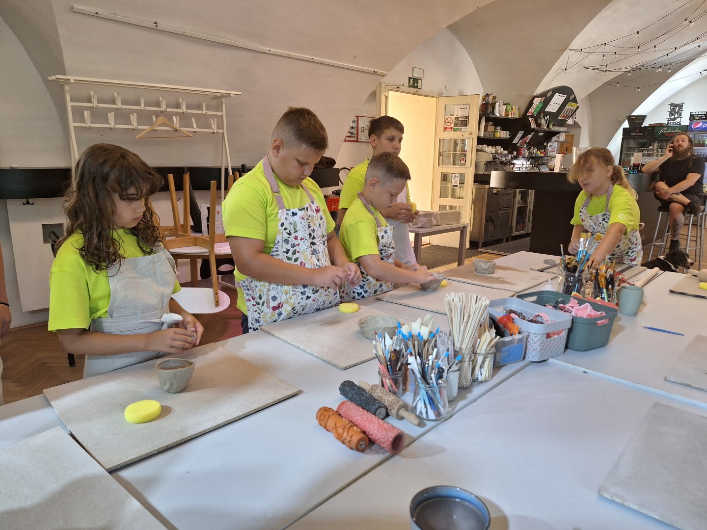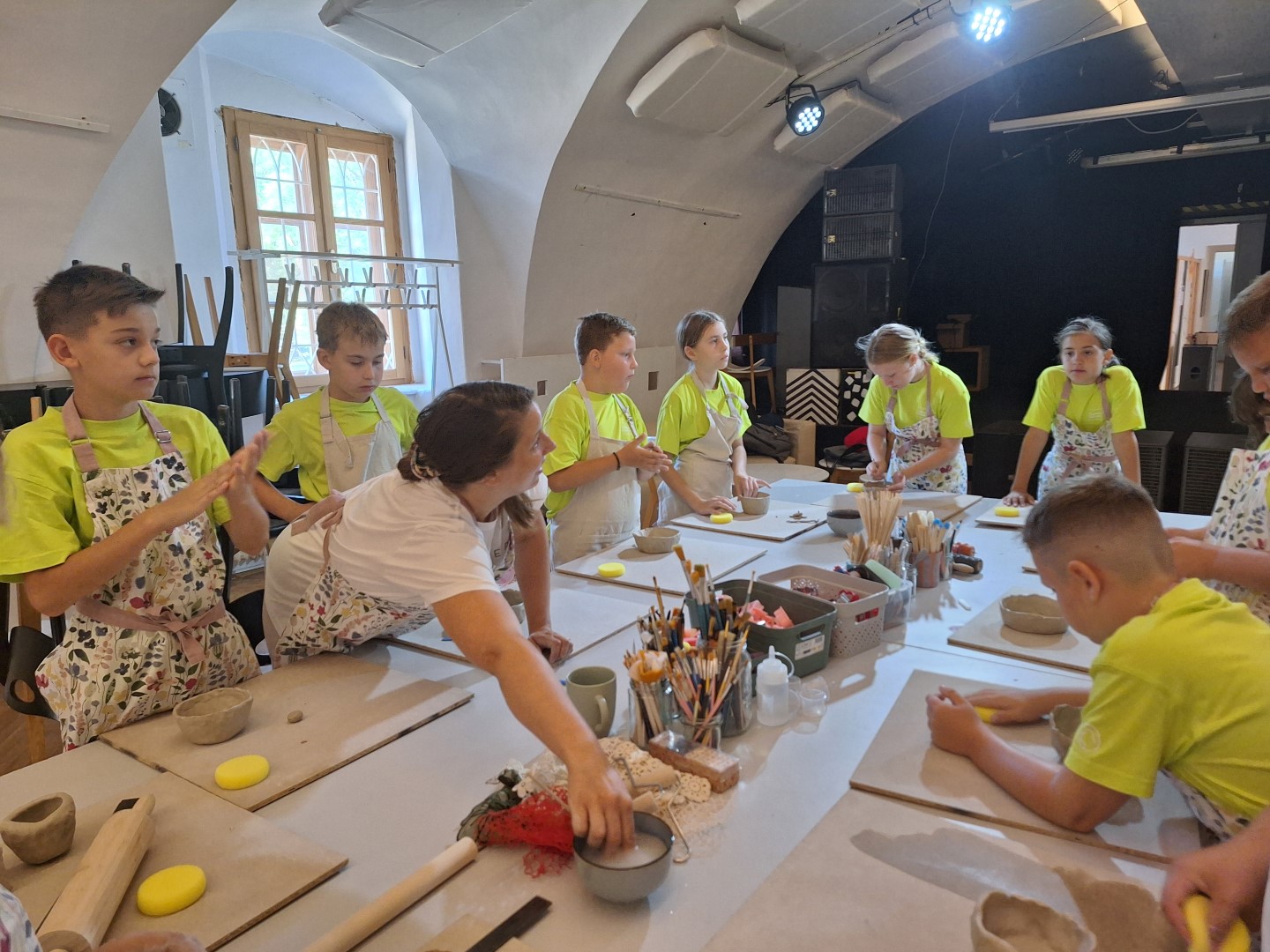 Prvi izziv je bilo ustvarjanje iz gline z Nastjo Novak Sukič (Glineraj Ceramics), v soboškem MIKK-u. Tako dekleta kot fantje so se prelevili v prave male umetnike in nastali so zanimivi izdelki, ki jih bodo otroci imeli kot spomin na letošnji tabor.