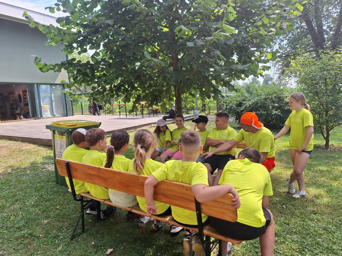 Drugi dan tabora smo preživeli na Petanjcih, kjer smo se dopoldan v prijetnem naravnem ambientu Vrta spominov in tovarištva družili z igralcem Gorazdom Žilavcem, ki je za en dan postal »smetar«. Iz odpadkov, ki so jih otroci zbirali že doma in jih prinesli na tabor, smo izdelali pošast. Nato smo se prelevili v viteze s starodavnimi imeni in se podali v raziskovanje parka in se vmes spoprijemali s skritimi izzivi in namigi, po rešitvi katerih smo našli orodje, s katerim smo lahko rešili uničili ustvarjeno pošast – vse uporabljene odpadke smo pravilno razvrstili v zabojnike za ločeno zbiranje odpadkov. Temu so sledile še druge družabne igre, klepet in kosilo v globoki naravni senci, ko je Gorazd z nami delil tudi številne izkušnje in dogodivščine iz igralskega poklica.